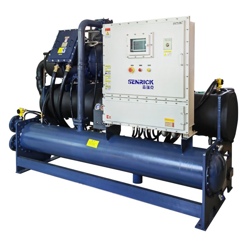 防爆冷水機作為冷水機的一種,它和其他冷水機大的不同之處是使用場所,它一般使用在易燃易爆等特種場所。而要說防爆冷水機的特點,主要可以分為這幾種:節(jié)能、安quan、效率高、靈活和方便。先說一下節(jié)能吧,主要是因為它采用了進口雙螺桿壓縮機,在機組無論是在滿負荷或是部分負荷時都可以達到較好的制冷效果;安quan是因為它的電系統(tǒng)和水系統(tǒng)都具備完善的保護設(shè)備。